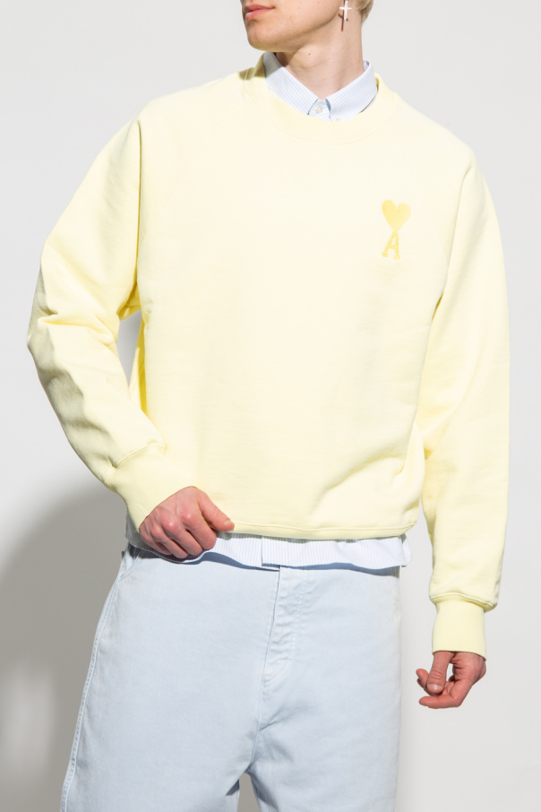 Light yellow sweatshirt from Ami Alexandre Mattiussi. Made in part of organic cotton, this oversize design features Ami de Coeur embroidery, logo detail at the back and ribbed trims at the round neck, hem and cuffs.