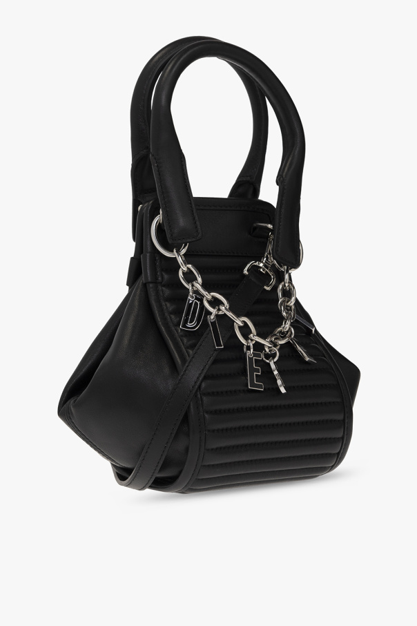 Black ‘D-VINA-RR XS’ shoulder bag from Diesel. Crafted from leather, this design secures with a zipper and magnetic snaps and showcases decorative quilting, a detachable chain with a logo, two half-round handles, a detachable and adjustable shoulder strap, silver-tone metal hardware and one internal compartment.