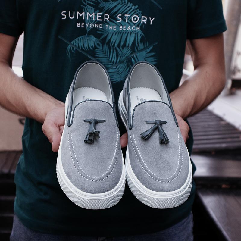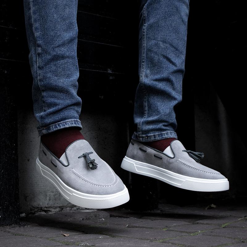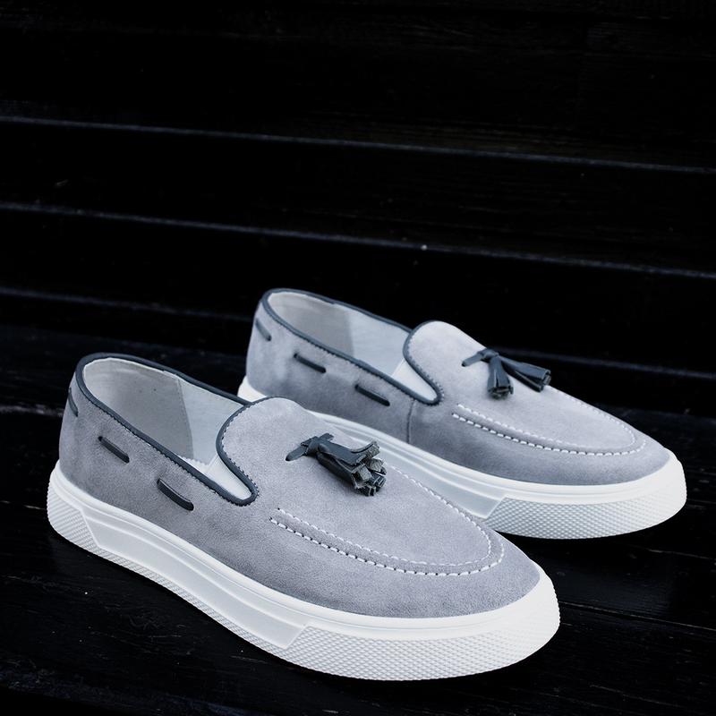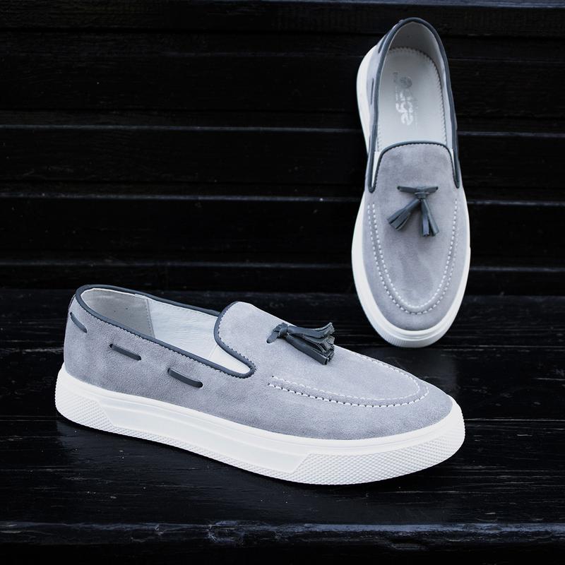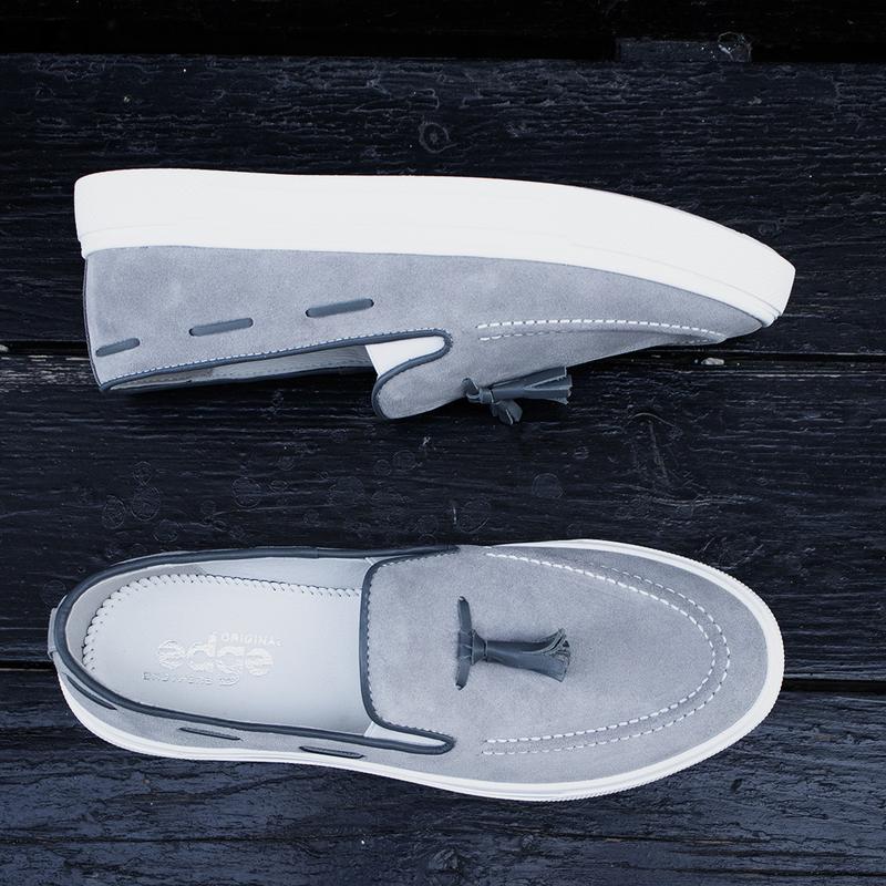 Мужские лоферы сшиты из натуральной замши и легкой подошвы ЕВА. Светло-серый цвет делает их очень стильными и непохожими на другую обувь!
