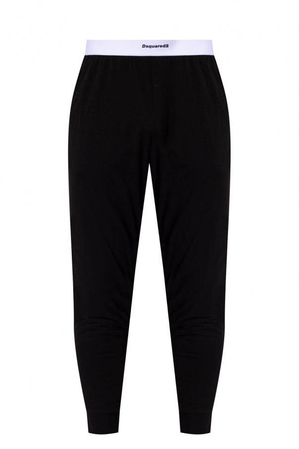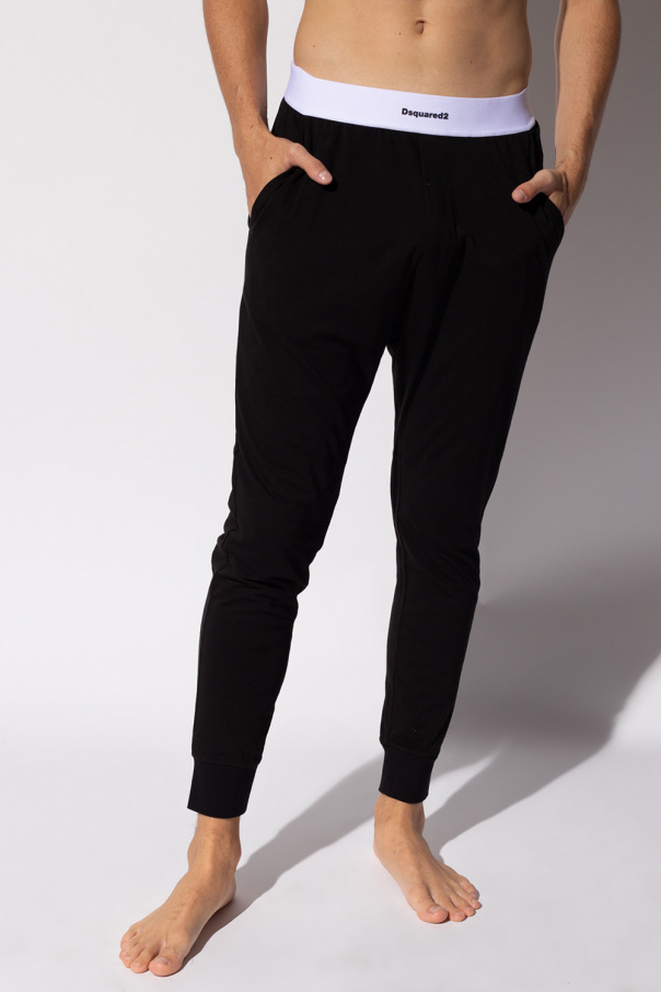 Black pyjama pants from Dsquared2. Crafted from cotton, this pair features an elasticated waistband with a black tactile logo, two side seam pockets and ribbed cuffs.