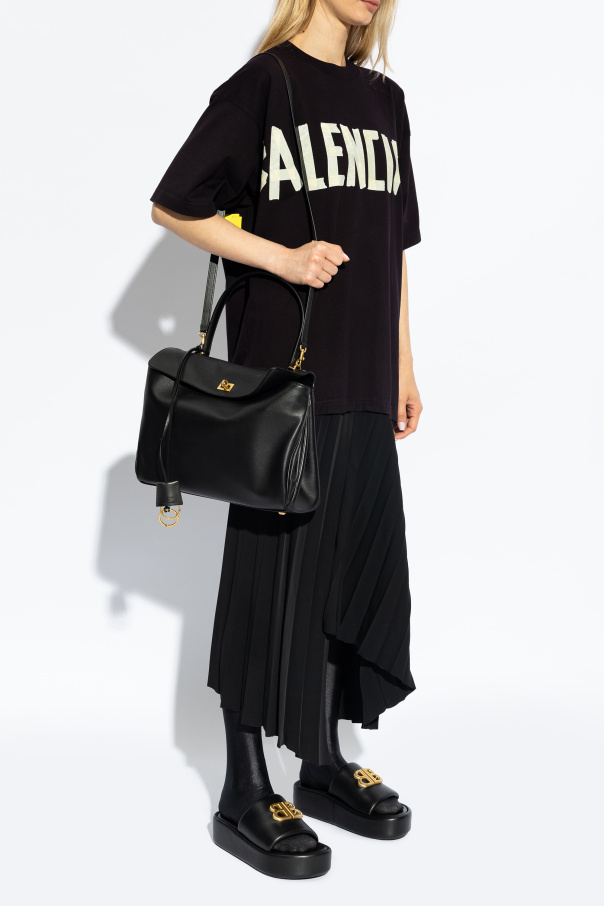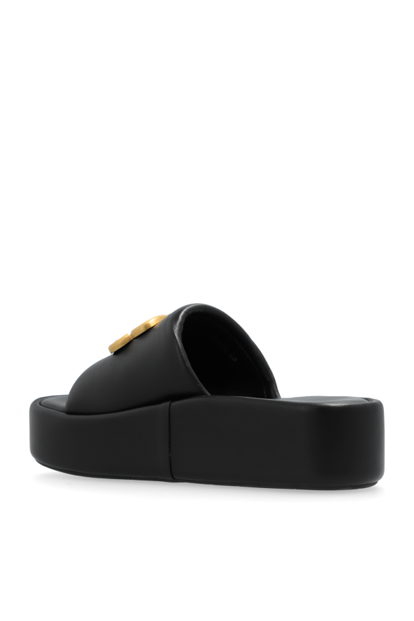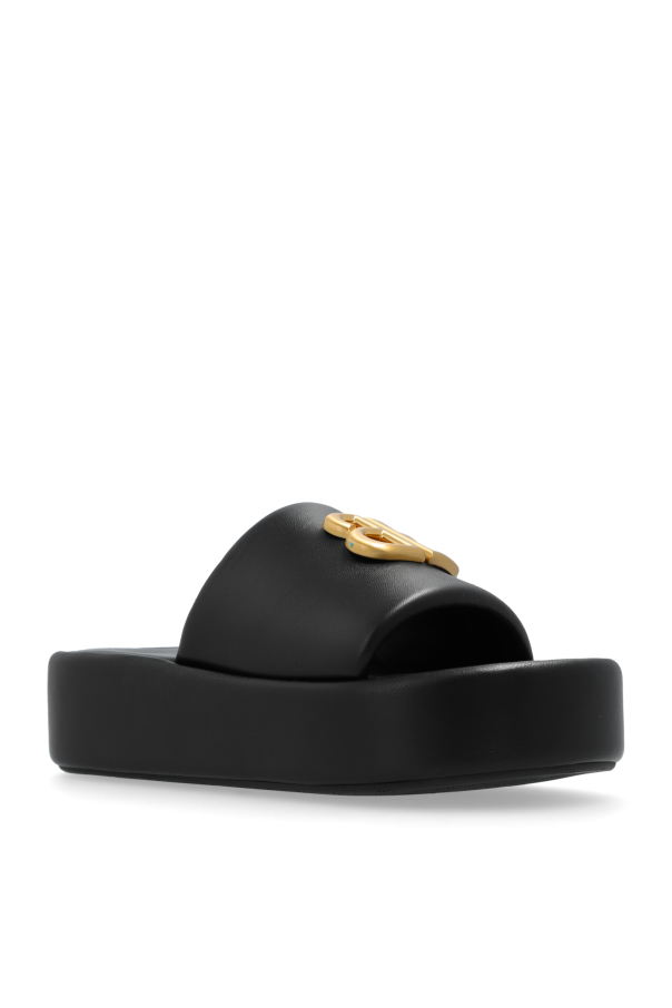 Introducing the \'Rise\' slides, a testament to Balenciaga\'s commitment to minimalistic yet modern design. Crafted with an all-black aesthetic, these slides make a bold statement with their simplistic elegance. The wide strap at the front, adorned with a distinctive golden logo, serves as a hallmark of quality and designer recognition. The \'Rise\' slides are meticulously crafted from 100% premium leather for both the exterior and interior layers, ensuring a smooth and refined finish. This choice of material not only exudes luxury but also promises durability and comfort for the wearer. The robust 100% rubber sole accentuates a solid appearance while providing stable support, making these slides an epitome of both style and practicality. Whether paired with a casual black, pleated skirt and a loose t-shirt, or complemented by a chic black bag with the logo, these slides adapt seamlessly to various styles, showcasing their versatility. Why Purchase the \'Rise\' Slides? Exclusive Design: Featuring Balenciaga\'s iconic golden logo for an unmistakable identity. Luxury Materials: Crafted from 100% premium leather for ultimate quality and comfort. Versatile Styling: Perfect for complementing a wide range of outfits, from casual to sophisticated. Durable Construction: Built with a robust rubber sole for lasting wear and support.
