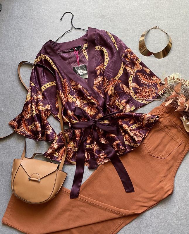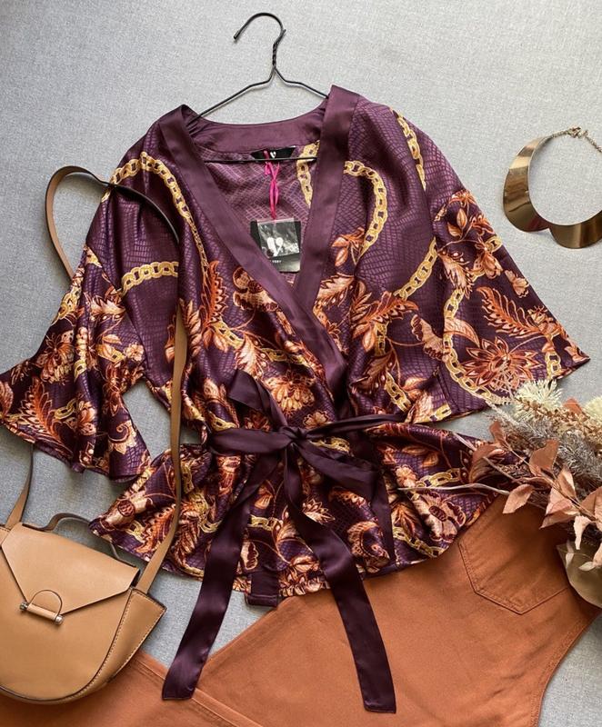 Новое шикарное шёлковое кимоно/блуза с запахом от английского бренда V By Very с рукавами в 3/4.
