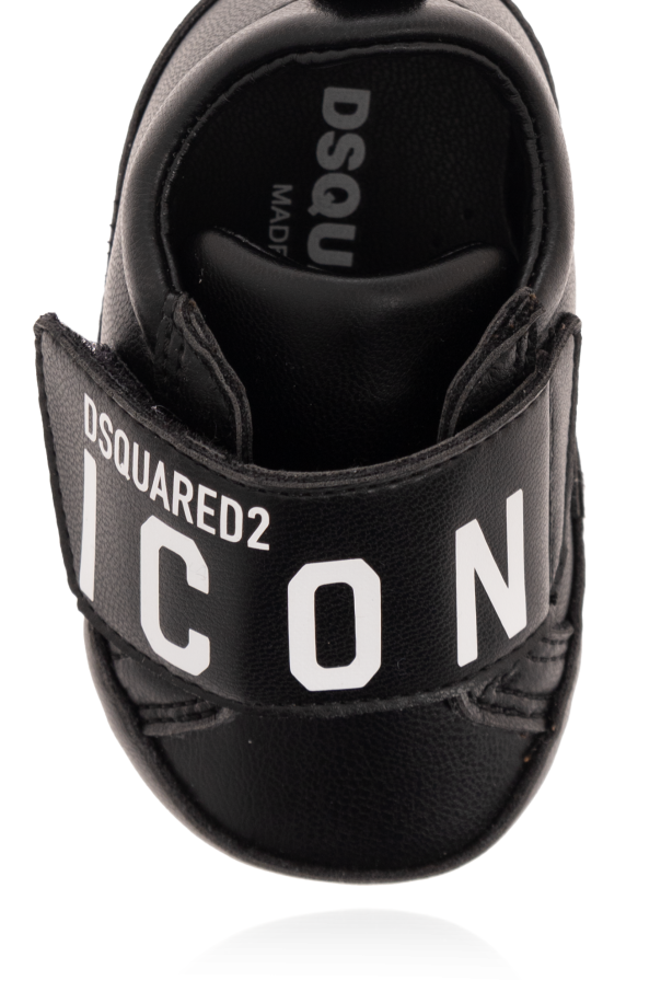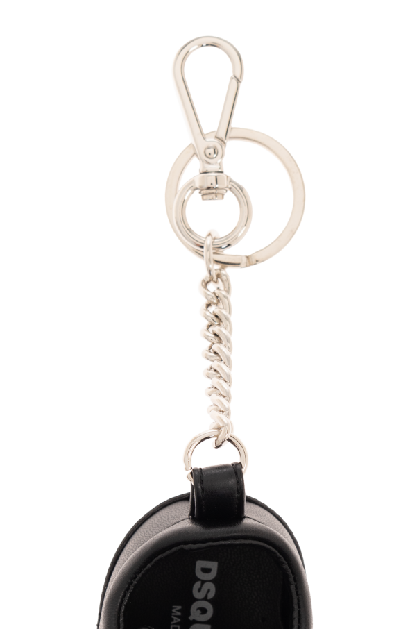 Black shoe keyring from Dsquared2. Fastened with velcro, this item features a white logo print and silver-tone metal hardware.