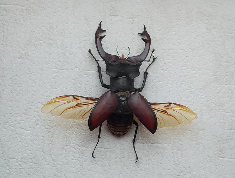 Настоящий жук рогач с расправленными крыльями в рамке под стеклом. Размеры рамки 19,6х20,3х3 см