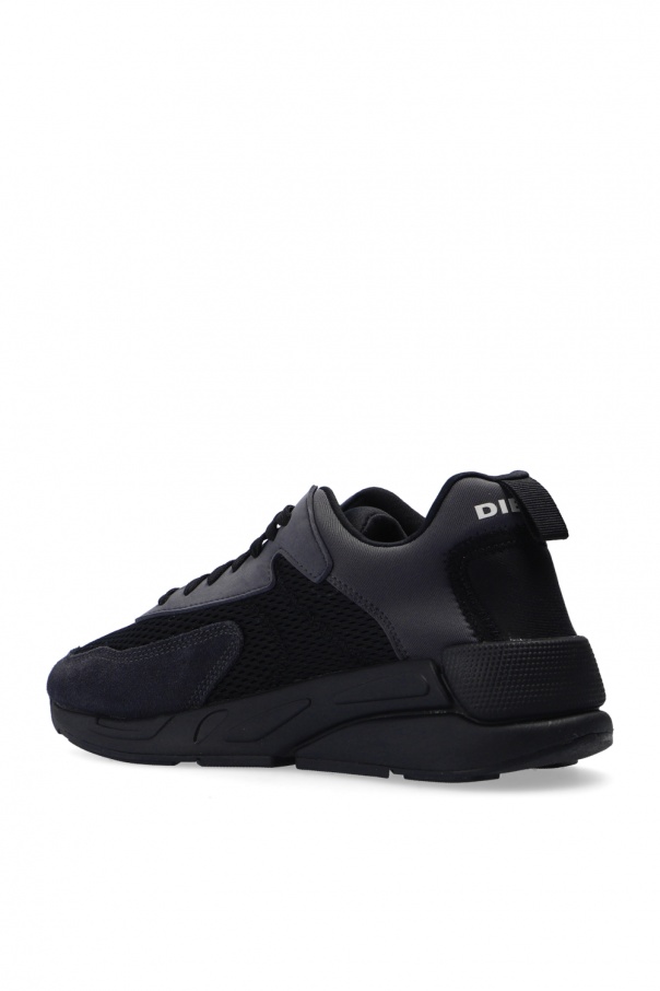 Black ‘S-Serendipity’ sneakers from Diesel. Finished with faux-suede and mesh, this lace-up pair sits on a black rubber sole and features a logo-printed tongue and a grosgrain pull tab on the back.