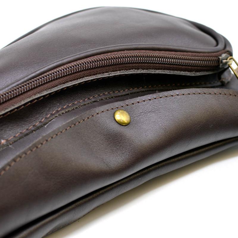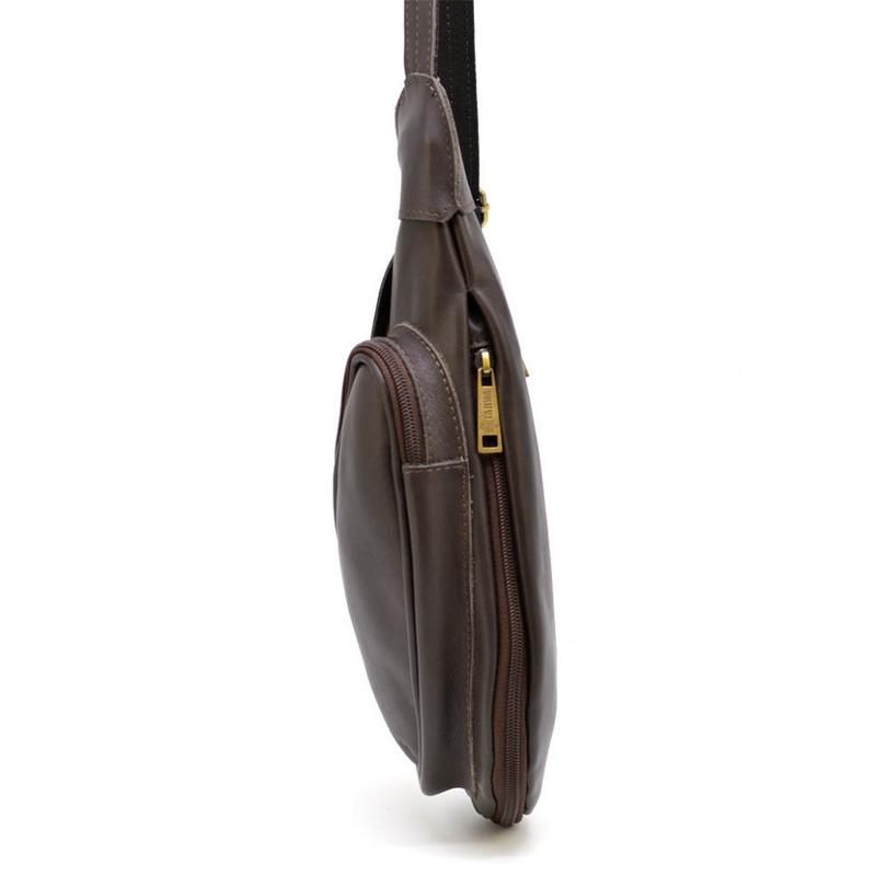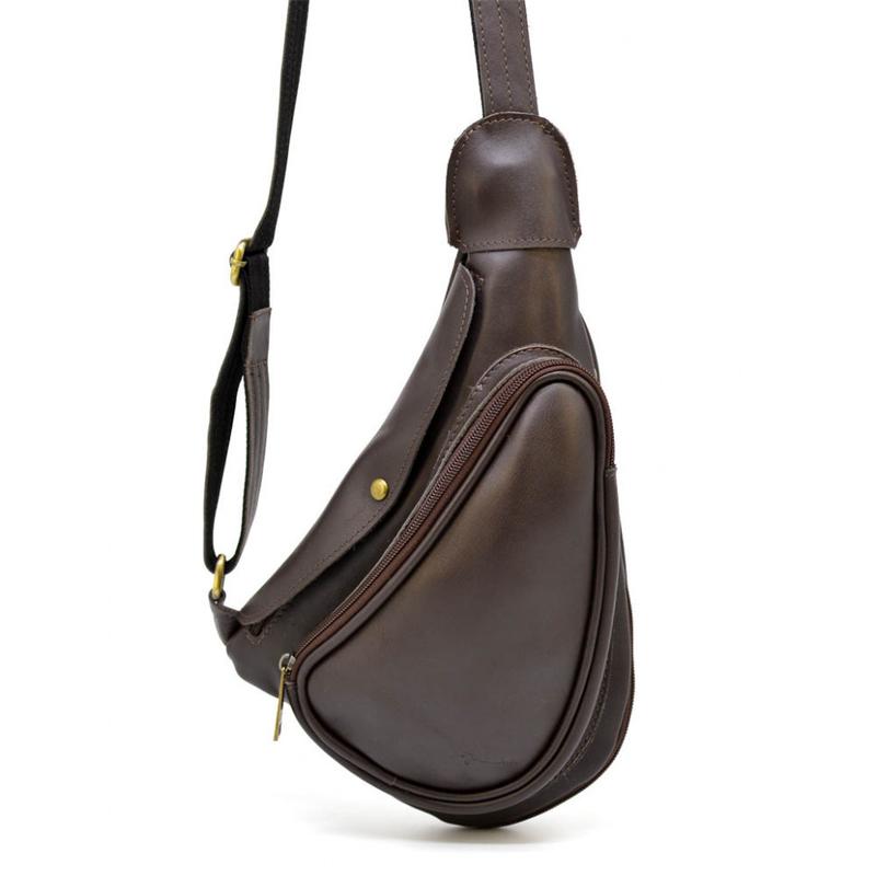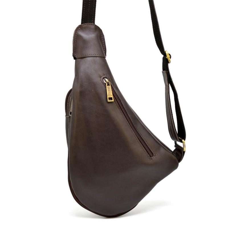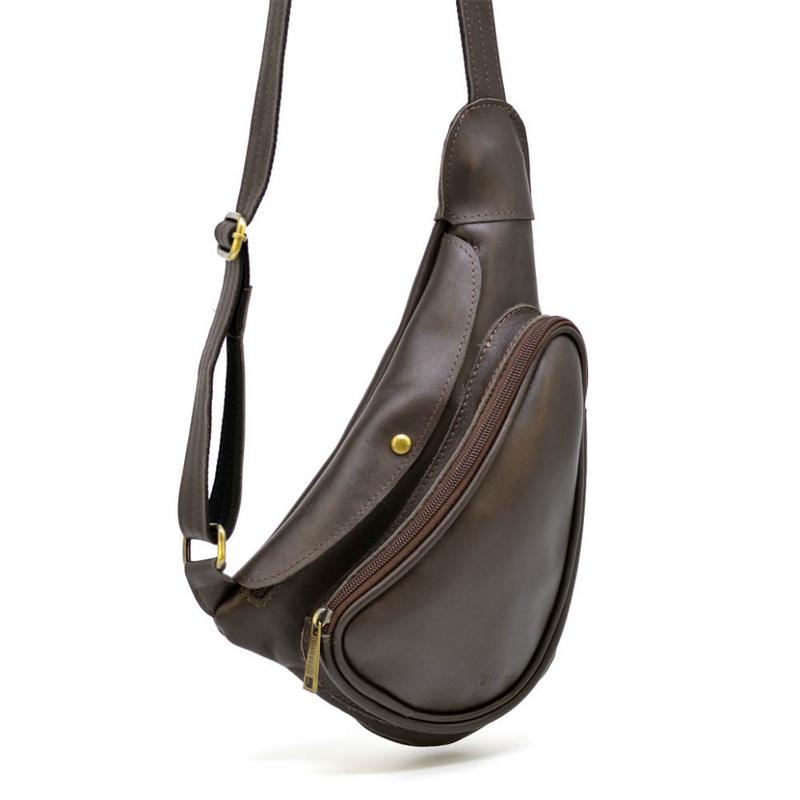 Рюкзак слинг на одно плечо изоготовлен из натуральной кожи "наппа" коричневого
