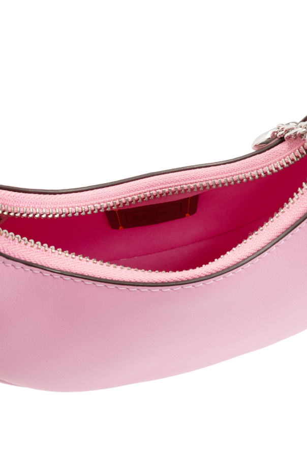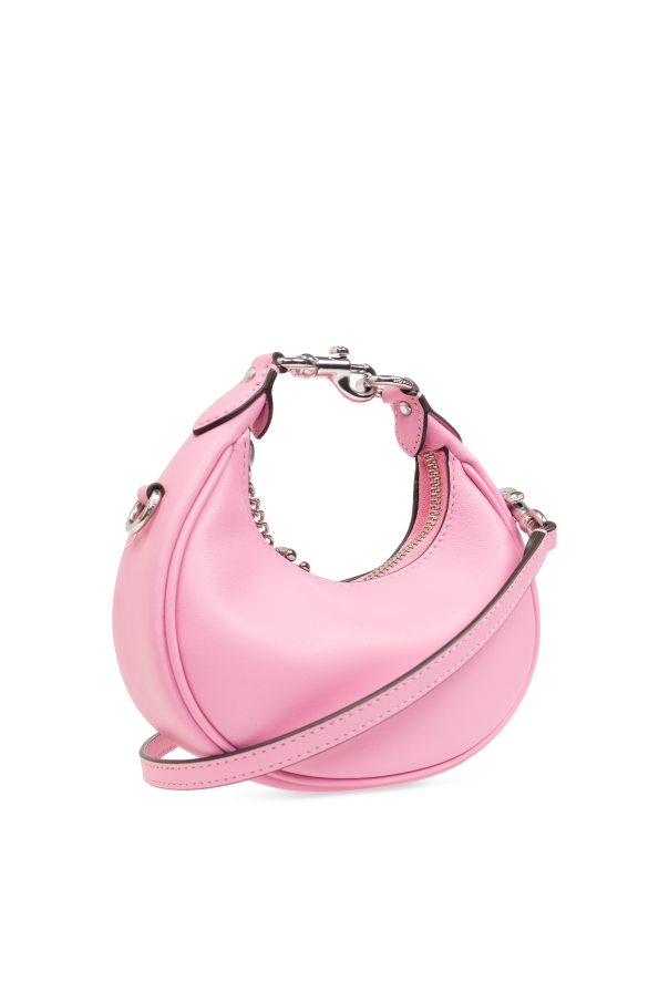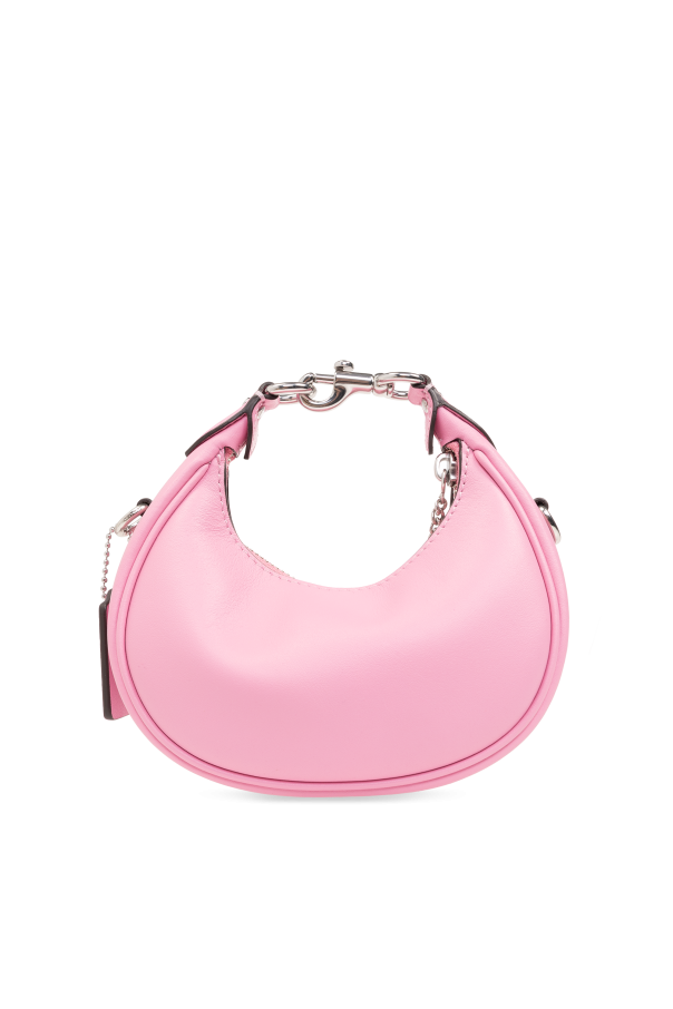 Introducing the \'Jonie\' shoulder bag by Coach, a paragon of modern elegance and functionality. Crafted from 100% genuine leather, this bag boasts a sleek, smooth exterior in a striking pink hue that captivates at first glance. Its unique, semi-circular shape with a rounded bottom adds a contemporary flair, setting it apart in the realm of women\'s fashion accessories. The \'Jonie\' features a long, adjustable strap, also in a harmonious pink, allowing for a customized fit that complements its wearer\'s silhouette. Silver-toned metal hardware adorns the bag, providing a sophisticated contrast that enhances its luxurious feel. The secure metal zipper closure ensures the safety of your essentials, while the dark, possibly burgundy interior lining, equipped with a small pocket, offers practical storage for smaller items. An intriguing detail is the chain, which could serve as an ornamental touch or an alternative hanging option, adding versatility to this exquisite piece. Notably absent are any overt designer logos or markings, allowing the bag\'s quality and design to speak for themselves and appealing to those who favor understated luxury. Why Purchase the \'Jonie\' Shoulder Bag? Exclusive Design: Its unique shape and vibrant color make it a standout accessory. Premium Materials: Crafted from high-quality, 100% genuine leather for durability and elegance. Functional Elegance: Features an adjustable strap and a practical interior pocket, blending beauty with utility. Detailing: Silver-toned hardware and an optional chain offer a modern twist on classic elegance. Understated Branding: Ideal for those who prefer the luxury of anonymity.