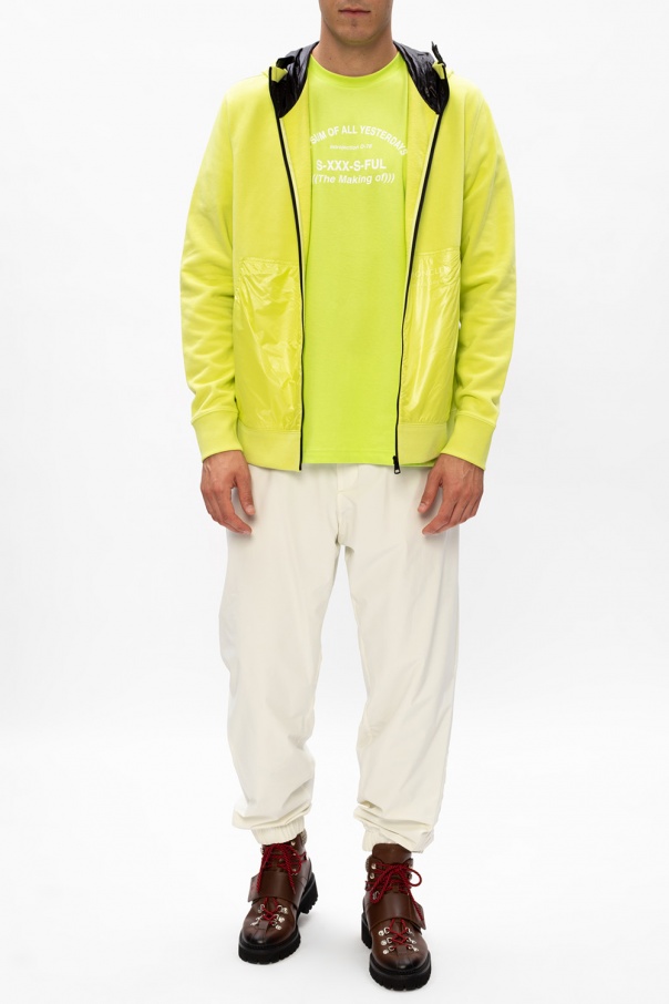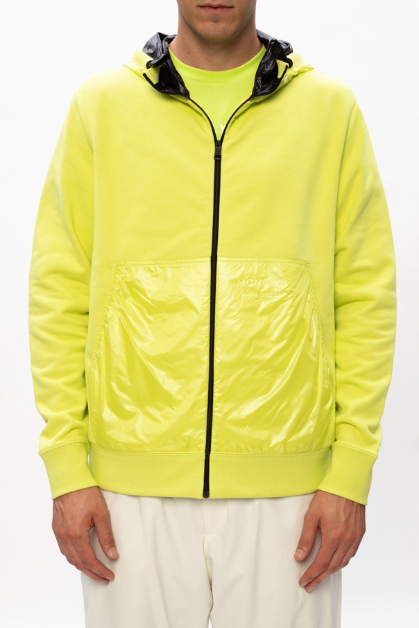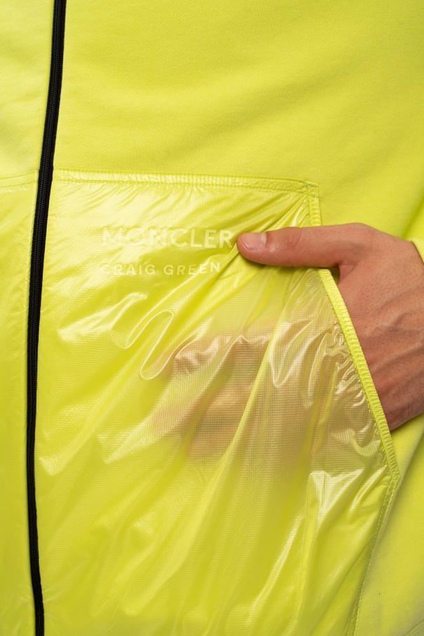 Yellow hoodie from Moncler ‘Genius’, the ‘Craig Green’ no. 5 collection. Crafted from cotton, this style has a goose down-packed back, zip closing, a drawstring hood, elastic trims and two transparent welt pockets.