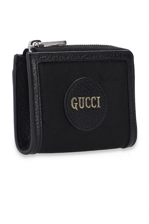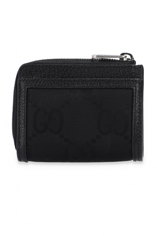 Black wallet from Gucci. Finished with leather, this item fastens via a zip and showcases a logo appliqué, the GG pattern, a card slot at the back and four card slots and a bill compartment inside.