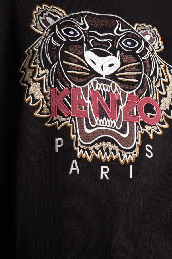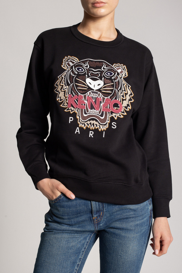 Black crewneck sweatshirt from Kenzo. Crafted from cotton jersey, this style showcases long sleeves and colourful graphic embroidery with the brand's logo and the iconic motif of a tiger on the front.