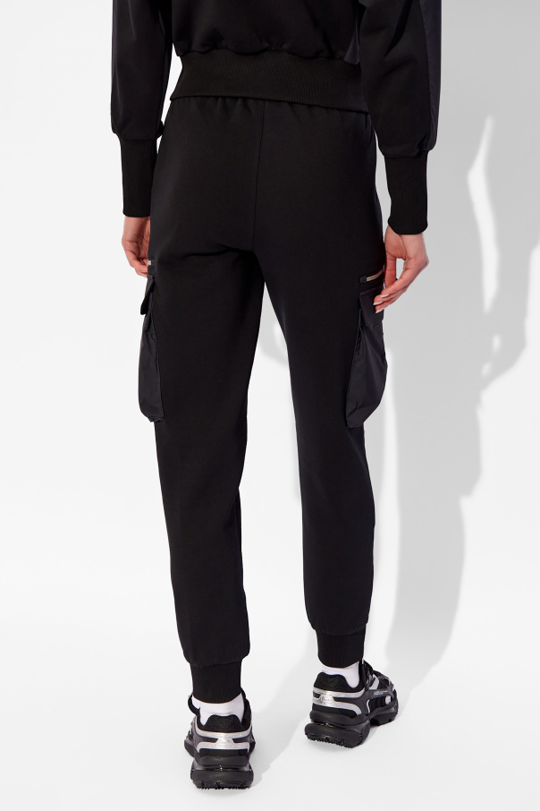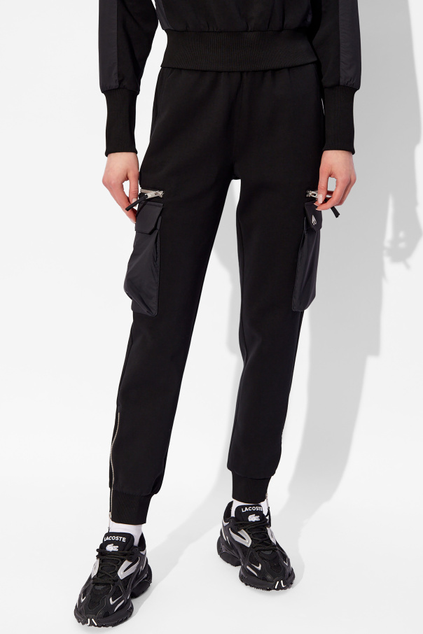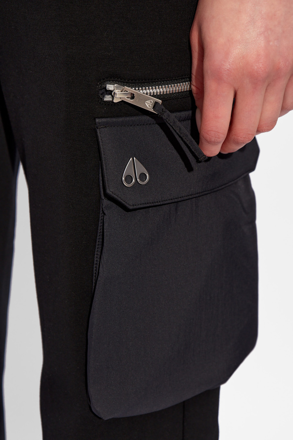 Introducing the \'Mixmedia\' Sweatpants by Moose Knuckles—a sublime fusion of luxury and leisure. Crafted with the discerning fashion aficionado in mind, these pants epitomize the essence of high-end casual wear. The dominant black hue exudes sophistication, while the straight, slightly tapered silhouette ensures a flattering fit for a myriad of body types. Constructed from a dense, matte fabric that boasts a blend of cotton, polyester, and elastane, the \'Mixmedia\' sweatpants offer unparalleled comfort without sacrificing style. The material’s elasticity not only contours to the body’s movements but also maintains its shape, ensuring longevity and consistent aesthetic appeal. A meticulous attention to detail is evident in the side pockets, adorned with metallic zippers and silver accents, enhancing both functionality and visual allure. The pockets, accentuated with precise stitching, along with a petite, metallic logo featuring two droplets, add a unique signature to the design. An elastic waistband further assures a snug, yet comfortable fit, making these pants a versatile addition to any wardrobe. Why Purchase This Product? Superior Comfort: The blend of cotton, polyester, and elastane ensures a soft, flexible fit. Elegant Design: Sleek black color and subtle tapering offer a sophisticated aesthetic. Functional Elegance: Zippered pockets with silver detailing provide practicality without compromising style. Signature Detailing: Unique metallic logo adds an exclusive touch to the ensemble.