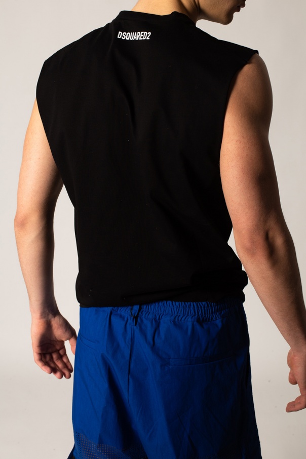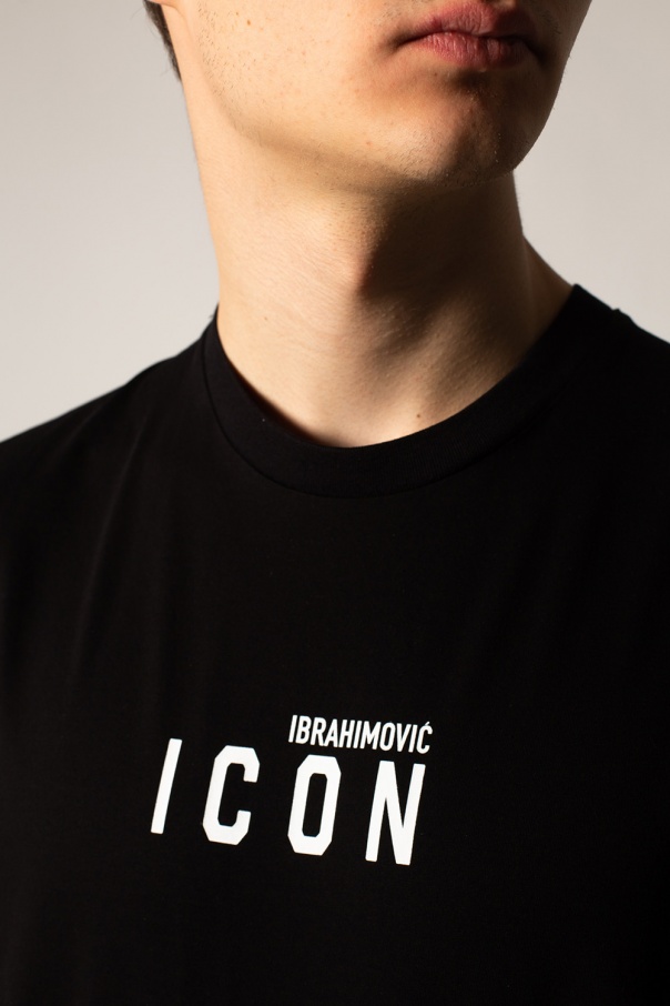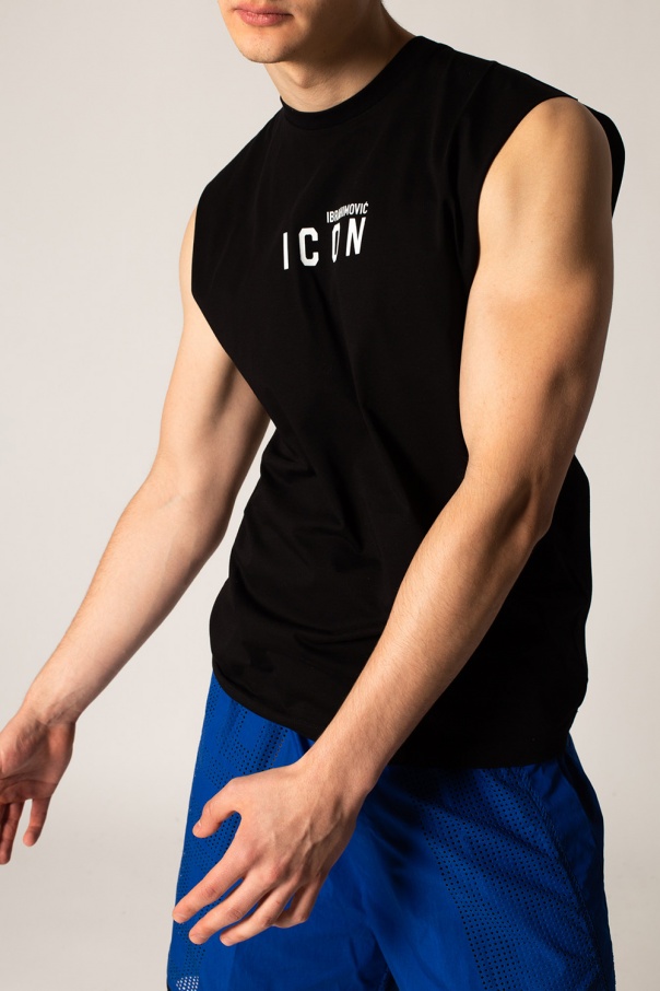 Black sleeveless T-shirt from ICON lbrahimović x Dsquared2. Made of cotton, this design features a printed pattern and logo in white as well as a ribbed round neck. This capsule collection was created in collaboration with Swedish footballer Zlatan lbrahimović.