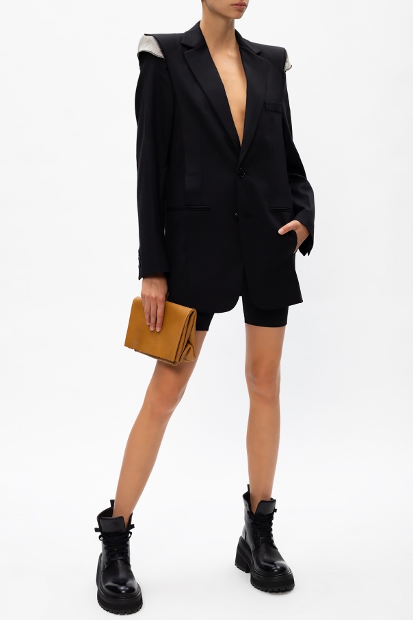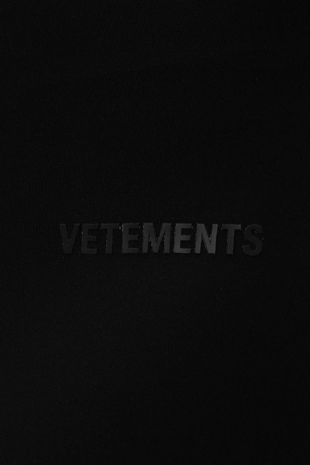 Black cropped leggings from VETEMENTS. Embroidered and printed with the label\'s logo, this pair is finished with an elasticated waistband.
