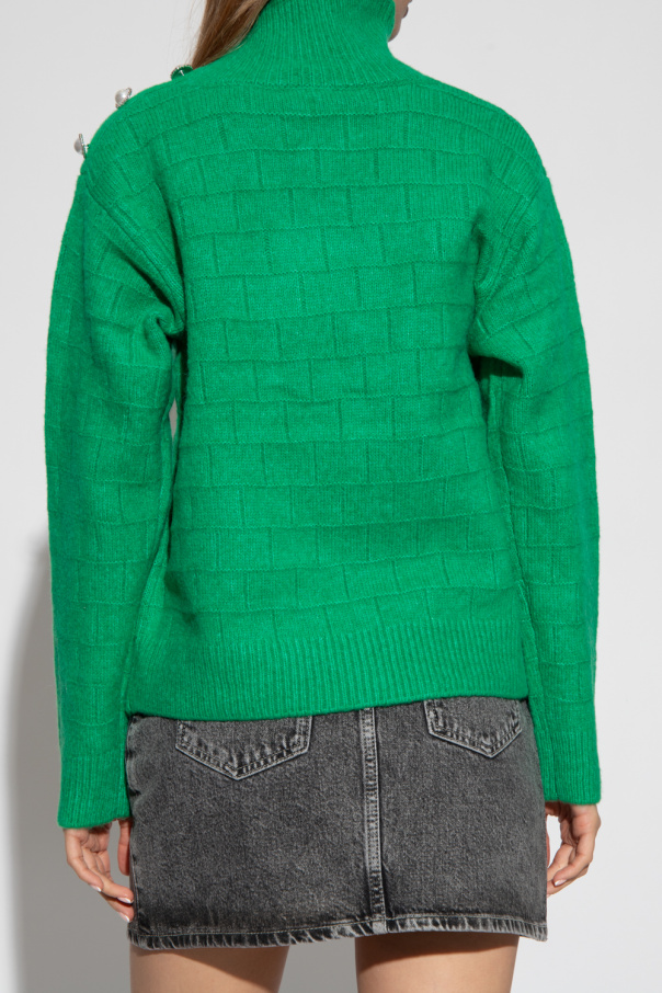 Green 'Tonna’ turtleneck sweater from Custommade. Knitted from wool, this style features a snug collar, long sleeves and decorative glossy buttons with a pearly finish.