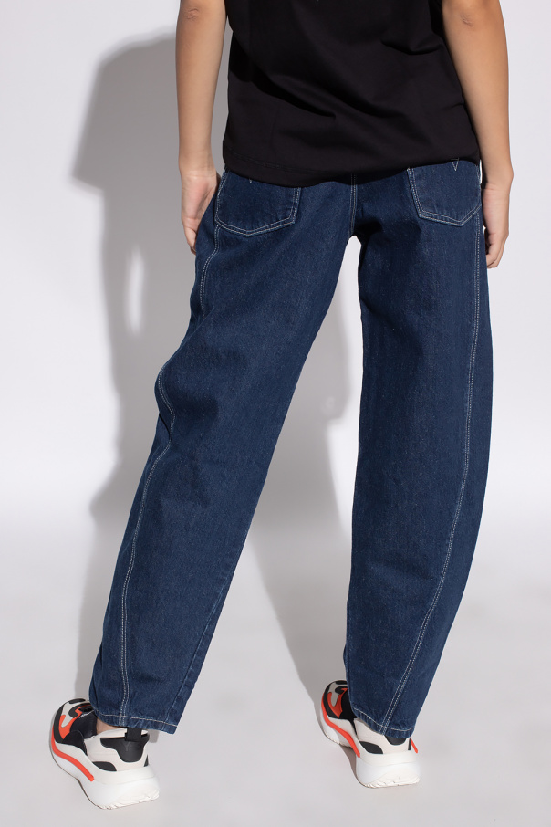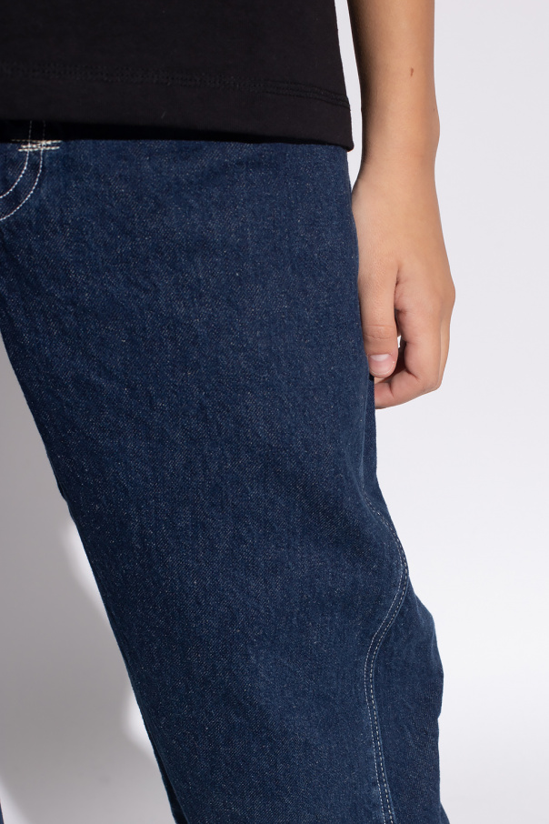 Navy blue‘Twisted’ from Levi\'s, the ‘Red’ collection. Crafted from cottonised hemp with a high-waisted, relaxed silhouette, this pair features a zip fly with a button, classic five pockets, cream stitching details and straight legs.