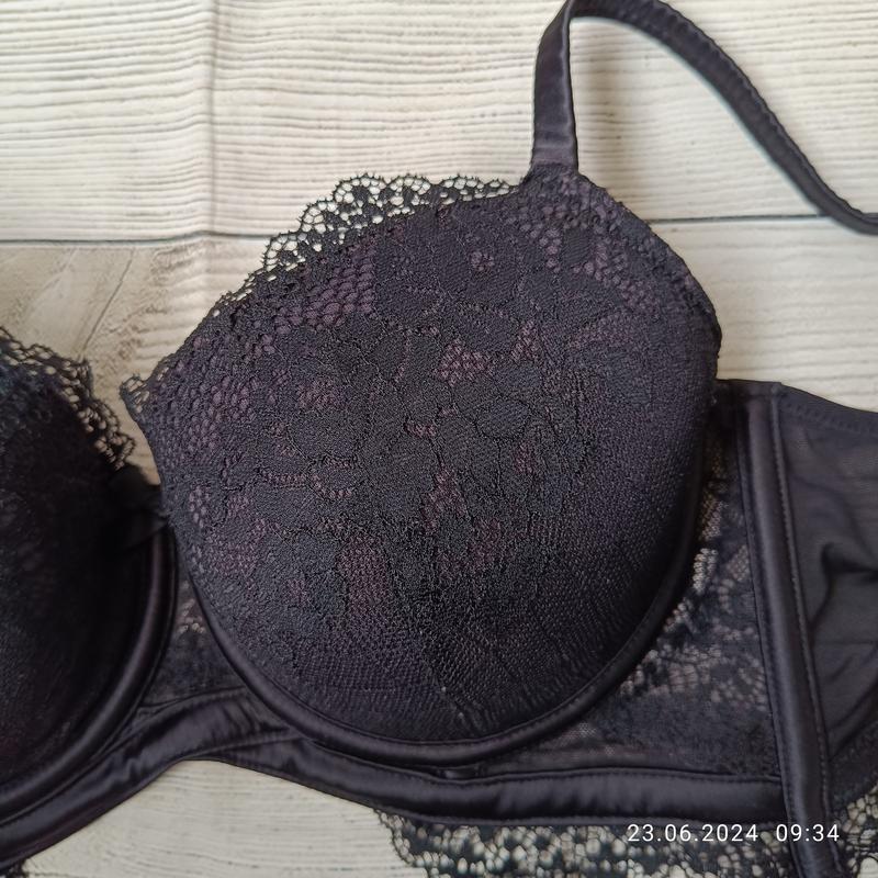 Чашки равномерный тонкий поролон, без пуш-ап. пояс кружево, чашки отделаны сатином. Бретельки не снимаются. Есть длинные боковые косточки.