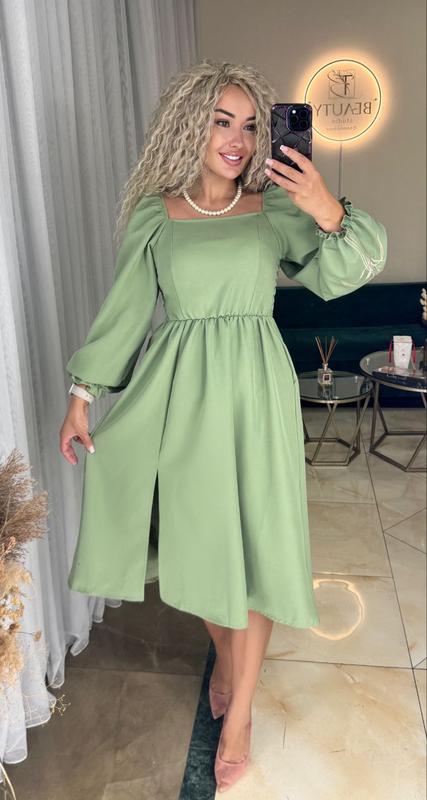 Кольори олива,фреза, темно-синійНіжна та романтична сукня з вишивкою 🌾 на рукавах, виконана з костюмної тканини. По спинці шпульна резинка, рукава на резинці, з боків кишені.