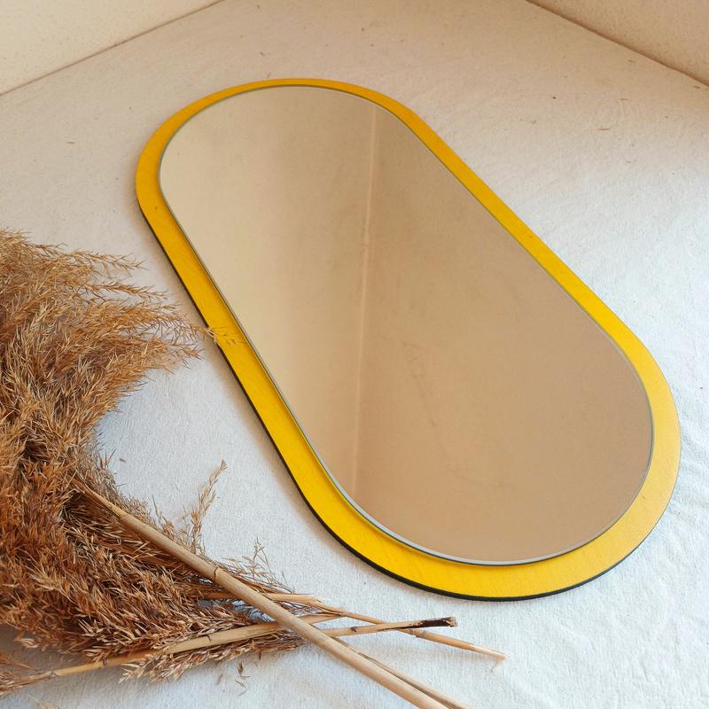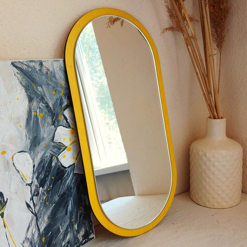 Это стильное овальное зеркало с ярко-желтой рамой станет ярким акцентом в любом интерьере. Оно удачно сочетается с декоративными элементами, создавая уютную и современную атмосферу. Зеркало подойдет как для прихожей, так и для спальни или гостиной, добавляя пространству света и ощущения легкости.