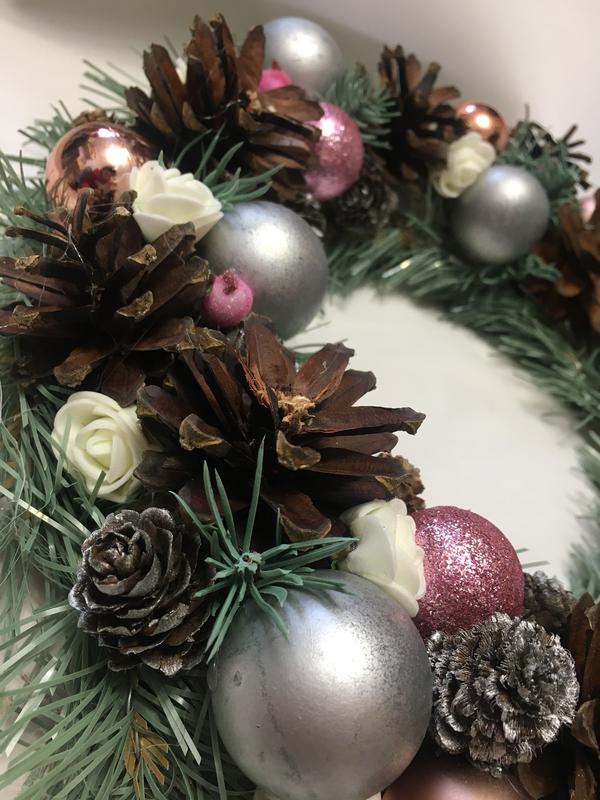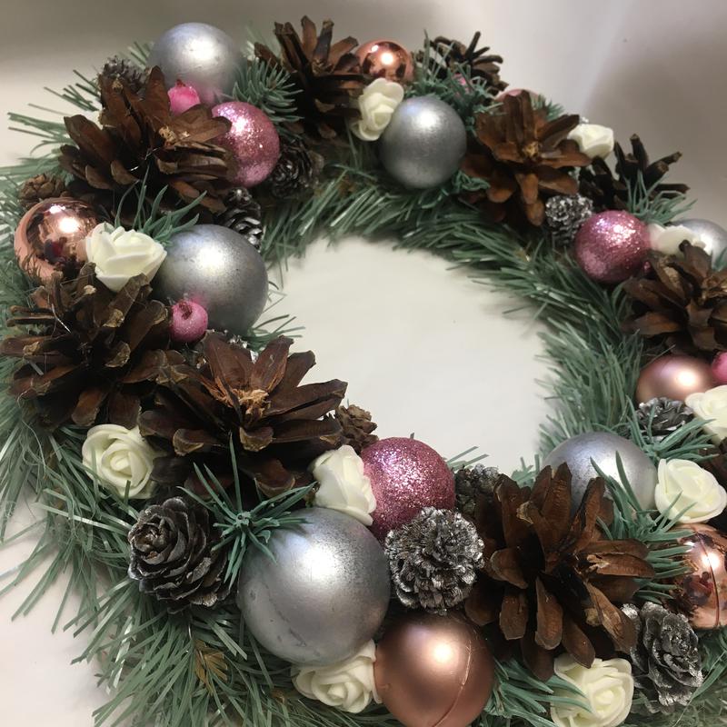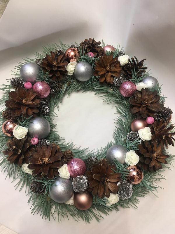 Новорічний віночок на двері ручної роботи ) Можливе виготовлення будь-якого іншого віночка за вашим бажанням, кольорова гама за вашим смаком ) Також можливе виготовлення підсвічників, переходьте на сторінку , там безліч іншого товару )