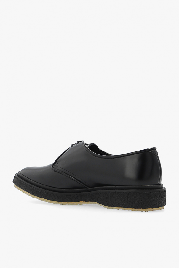 Black ‘Type 1’ shoes from Adieu Paris. Crafted from smooth leather, this lace-up model sits on a beige and black rubber sole.