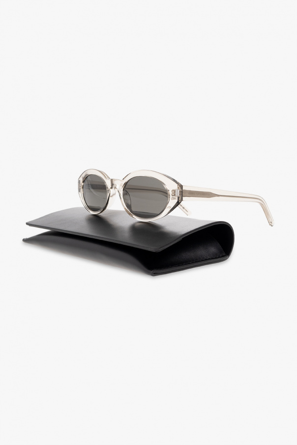 Cream ‘SL 567’ sunglasses from Saint Laurent. Crafted with a transparent finish, this model features a cat-eye design, white logo detailing on the temples and dark grey lenses with 100% UVA/UVB protection. Case included.