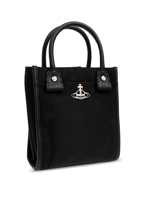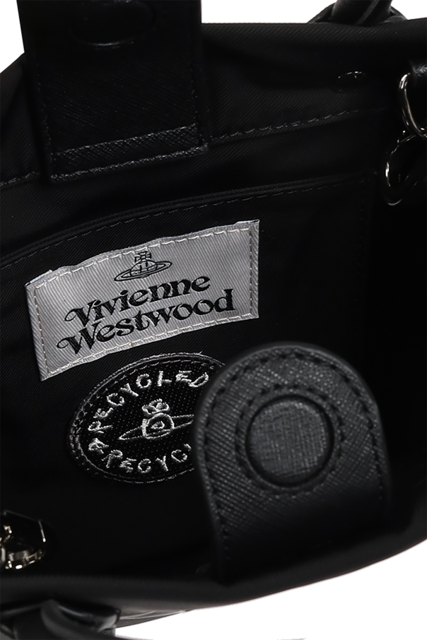 Introducing the \'Teddy Small\' shoulder bag by the renowned designer Vivienne Westwood, a paragon of sophistication and utility. This exquisite piece boasts a rectangular shape with rounded edges, making it an ideal companion for daily use. The bag is crafted from 100% recycled polyester, providing a smooth, uniform texture that exudes luxury. The handles are reinforced for durability, ensuring that they can withstand the rigors of everyday use. The dominant black color imparts an elegant, timeless appeal, perfect for any occasion. Adorned with the distinctive designer\'s logo—a silver-toned emblem reminiscent of an eagle with a planet—this bag is unmistakably a creation of Vivienne Westwood. The handles are secured with metal rivets, enhancing both the aesthetic and structural integrity of the piece. For added versatility, the bag comes with an attachable strap, allowing it to be worn over the shoulder. The closure mechanism is discreetly magnetic, maintaining the bag’s sleek and minimalist design. Inside, you\'ll find a spacious compartment complemented by a convenient slip pocket. Why You Should Buy This Product? Crafted from high-quality, 100% recycled polyester. Elegant black color and timeless design. Versatile with both hand and shoulder carrying options. Distinctive Vivienne Westwood logo. Durable handles reinforced with metal rivets. Magnetic closure for a clean, minimalist look. Spacious interior with an additional slip pocket.
