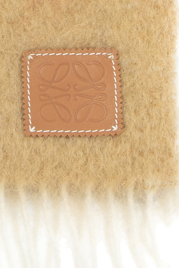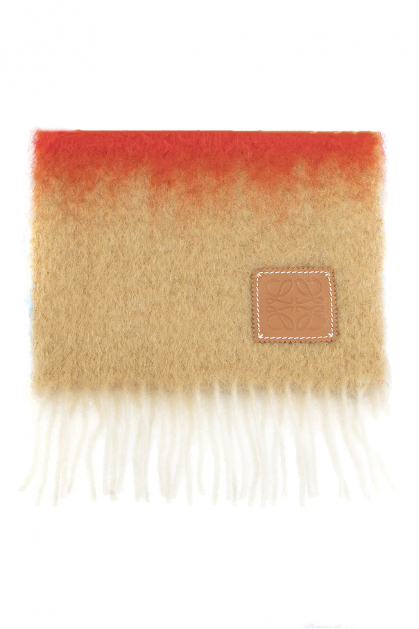 Multicolored scarf from Loewe. Crafted from a mohair and wool blend, this design is complete with a brown logo patch and fringes.