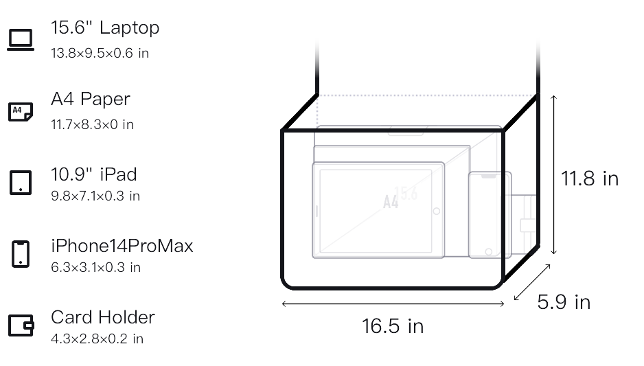 - Size:L16.5*W5.9*H11.8 in