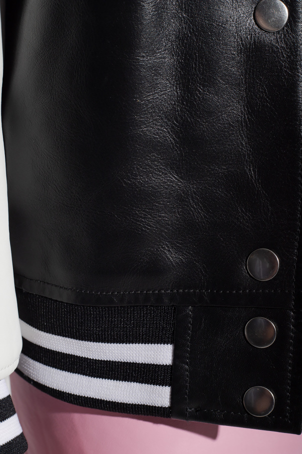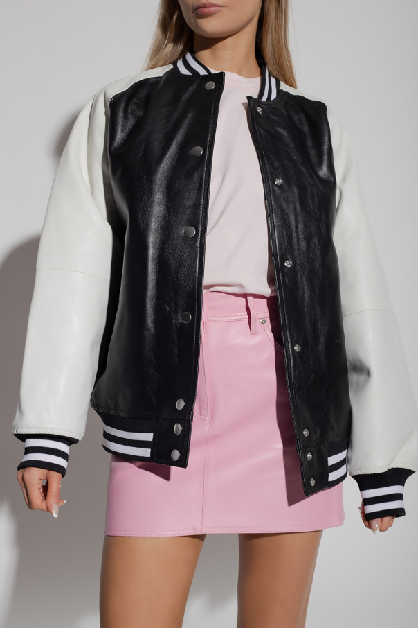 Black and white bomber jacket from Stand Studio. Made of calf leather, this garment features snap fastenings, two slip pockets and ribbed edges.