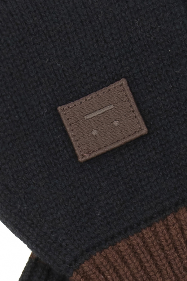 Black and brown gloves from Acne Studios. Crafted from wool, this pair features an elastic edge and a brown logo patch.