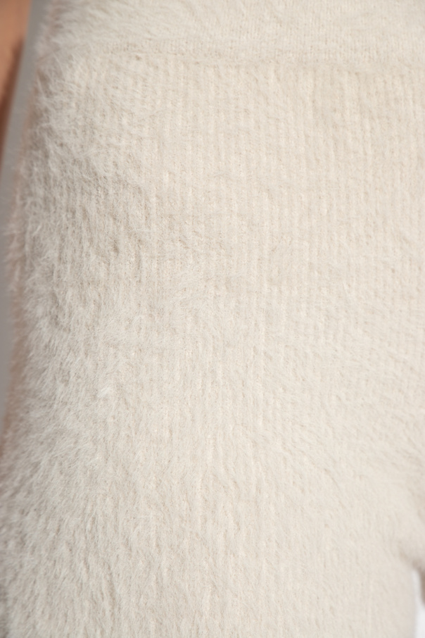 Cream ‘Neve’ shorts from Jacquemus. Crafted from material with a fluffy trim, this pair features a form-fitting silhouette with a high-rise waist and an elasticated waistband.