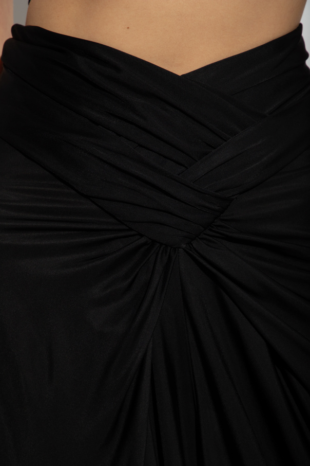 Black maxi skirt from Saint Laurent. Fastened with a hidden back zip and hook, this design is enriched by decorative draping on the front.