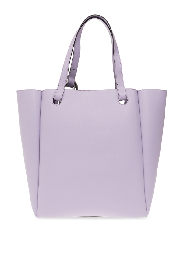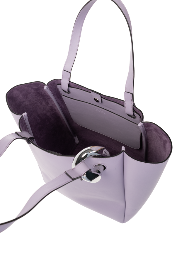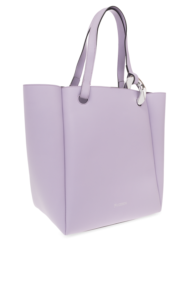 Purple ‘The JWA Corner’ shopper bag from JW Anderson. Fastened with a magnetic snap, this model features two half-round handles, silver-tone metal hardware and one internal compartment with one slip pocket.