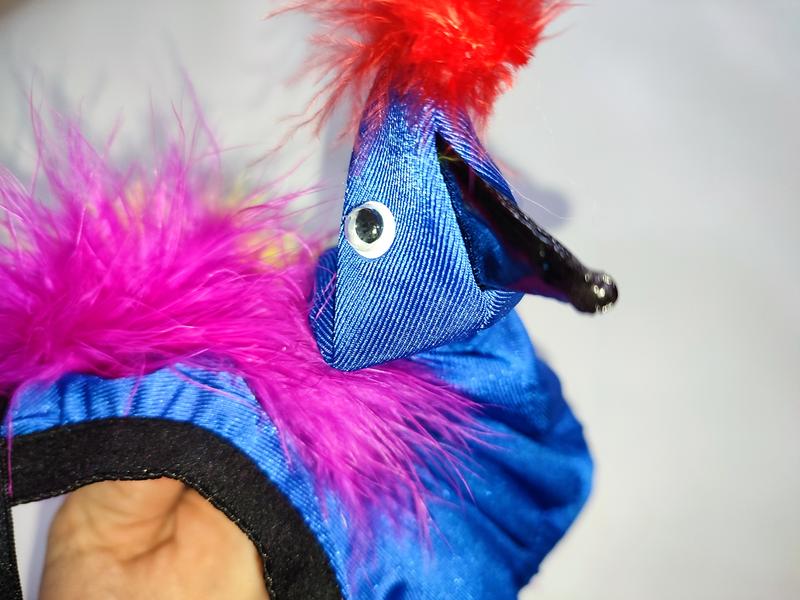 Трусики оригінальні, з пір'ям.Дзьобик пташки зроблений з глянцевою еко шкіри.