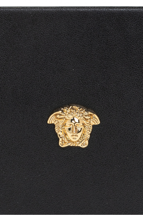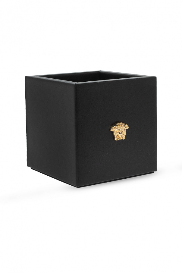 Black pen holder with the iconic Medusa head detail in gold-tone from Versace Home.