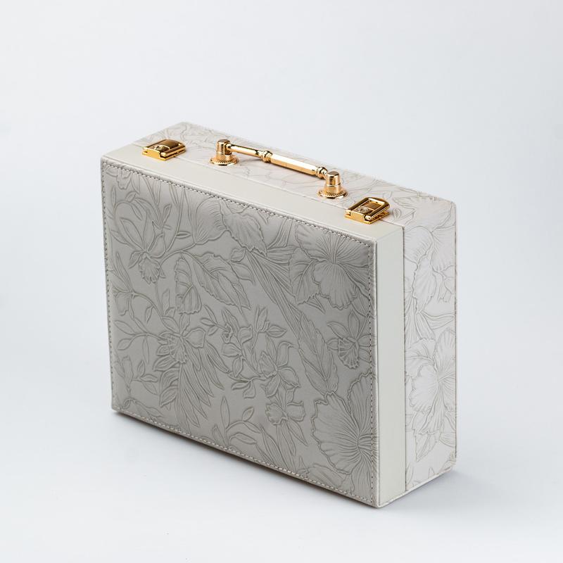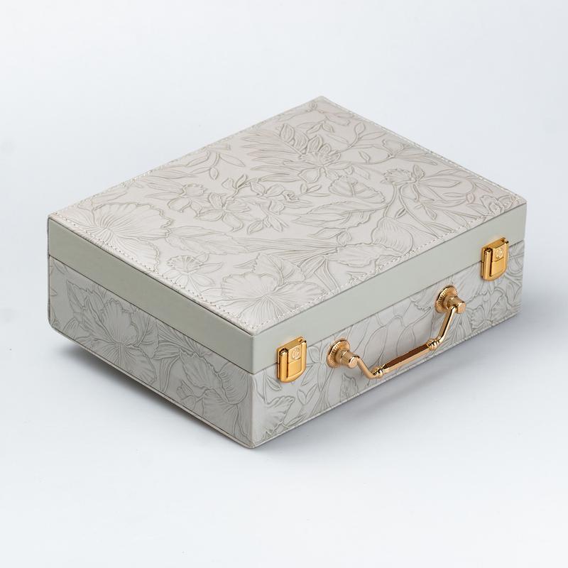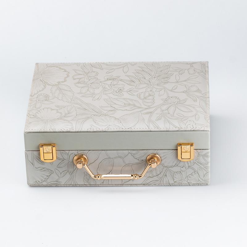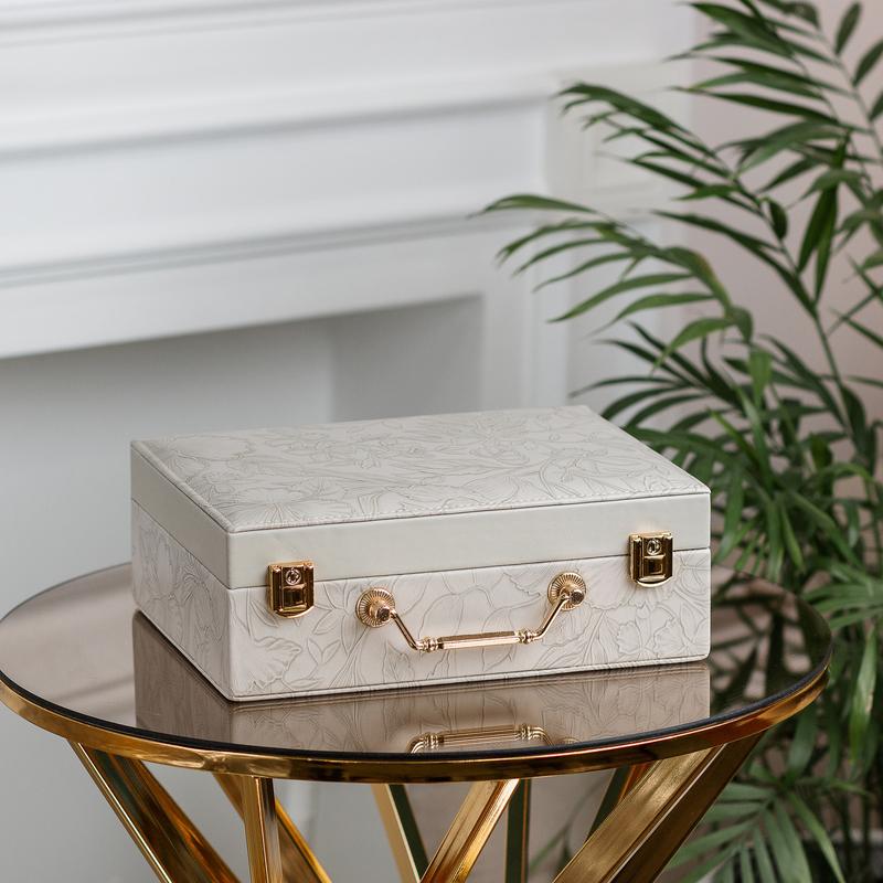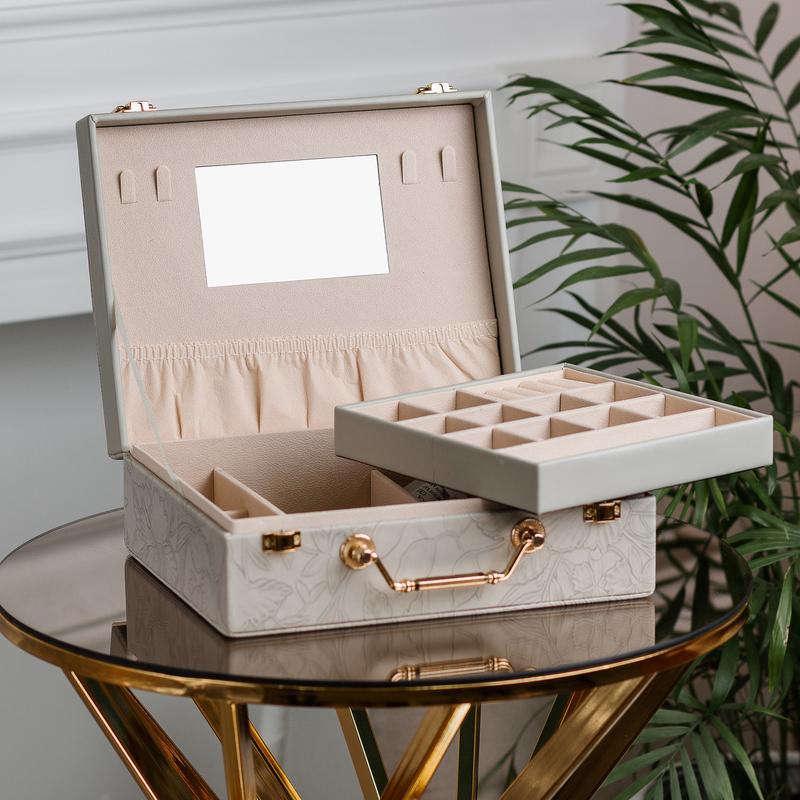 Кейс для украшений имеет прямоугольную форму, что делает его компактным и