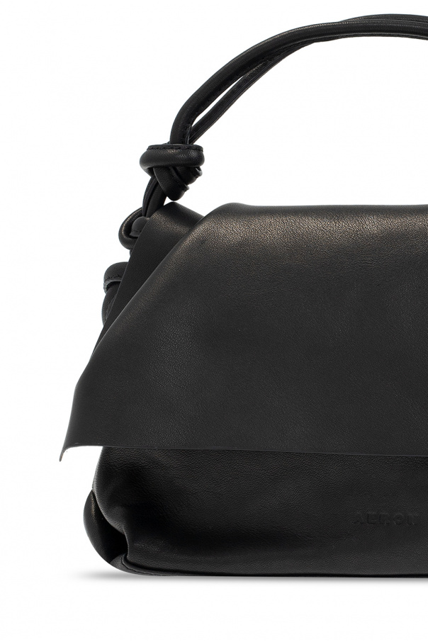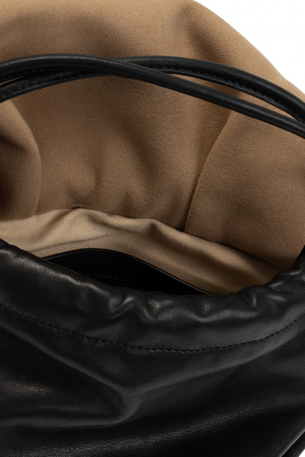 Black ‘Neru Mini’ hobo shoulder bag from Aeron. Crafted from lamb leather, this design cinches closed with drawstrings and features an embossed logo, a half-round handle, a shoulder strap and one internal compartment with a slip pocket.