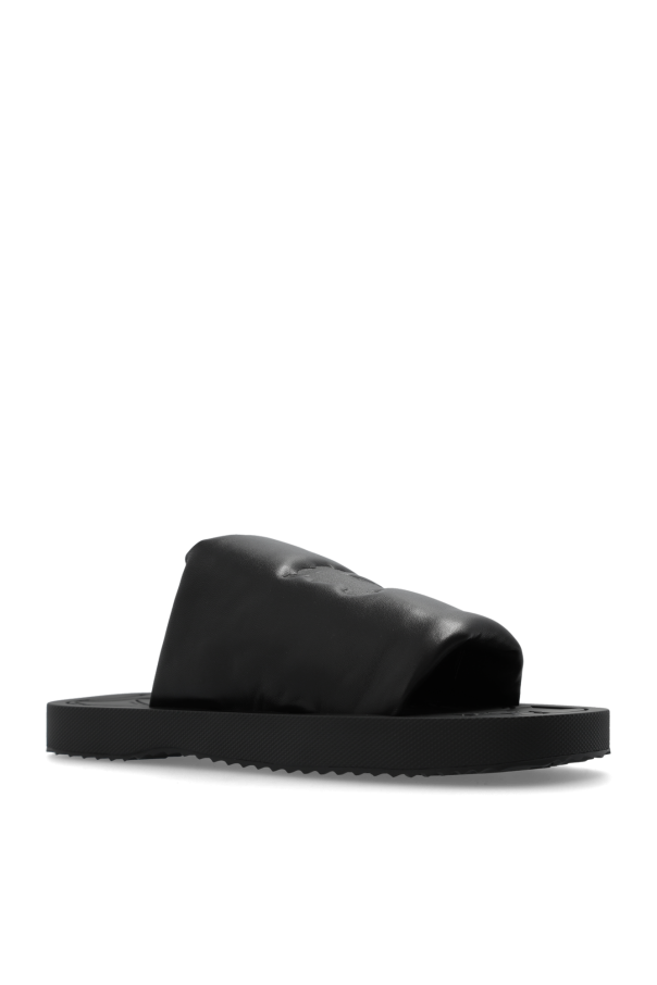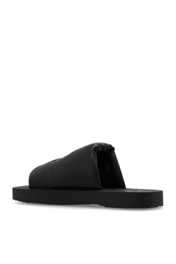 Introducing the ‘Slab’ Slides by Burberry - a testament to minimalist elegance and superior craftsmanship. These slides, presented in a sophisticated black hue, are defined by their simplicity and refined design. The upper, crafted from the finest leather, features a wide strap that gracefully covers the majority of the midfoot, showcasing a smooth texture that speaks volumes of its high-quality material. The flat sole, adorned with a decorative yet functional tread pattern, ensures optimal grip, blending aesthetics with practicality. A subtle logo or signature, hinted at the sole’s underside, adds a discreet touch of exclusivity, embodying the understated luxury Burberry is renowned for. With no additional embellishments or prints, save for a discreet logo adorning the front, these slides are the epitome of versatile sophistication. Why Invest in These Slides? Exquisite Material: Both the outer and inner layers are crafted from premium leather, ensuring durability and comfort. Superb Traction: The rubber sole features a distinctive pattern that not only enhances the design but provides excellent grip. Understated Elegance: The minimalist design, complemented by the discreet Burberry logo, makes these slides a timeless addition to any wardrobe. Versatile Style: Their simple yet chic appearance allows for seamless pairing with a multitude of outfits, from casual to more formal ensembles.
