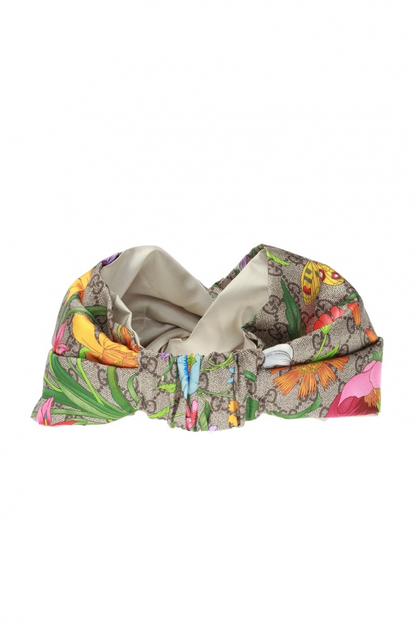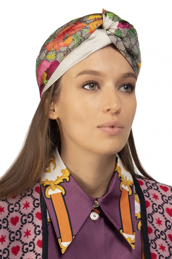 Multicolor headband from Gucci. Made of silk. Embellished with a colourful ‘Flora’ print.