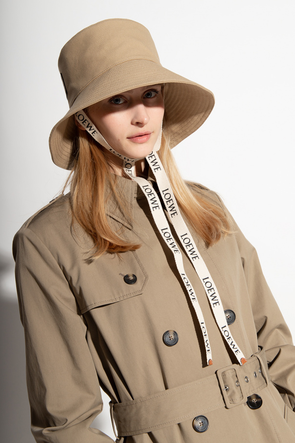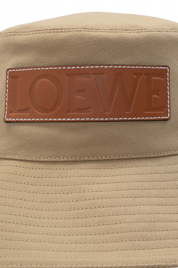 Beige hat from Loewe x Paula’s Ibiza. Made of cotton, this item showcases a brown patch with an embossed logo, decorative stitching details and canvas straps with a printed black logo.