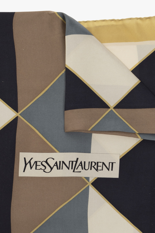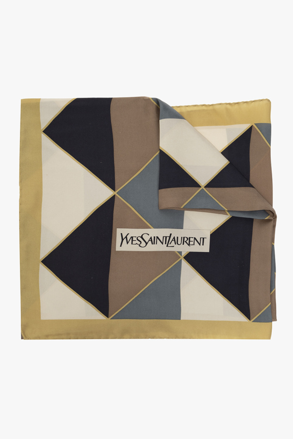 Multicoloured shawl from Saint Laurent. Made of silk, this item showcases a geometrical pattern accompanied by the brand\'s logo.