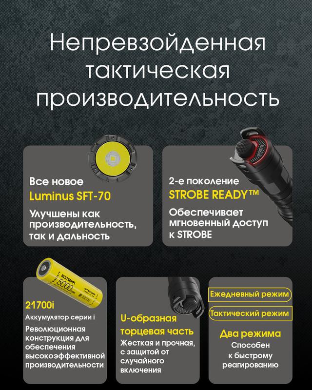сочетании с тактическими аксессуарами.Особенности Nitecore P23i удивляют своей мощностью и функциональностью. Фонарь
