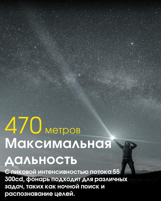 интенсивности потока света и дальности луча, которая составляет 470 метров.Nitecore P23i имеет два режима - ежедневный и тактический, что делает его