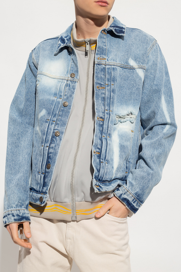 Blue denim jacket from 424. Distinguished by a stonewashed treatment, this style features button fastenings, two frontal pockets, a red logo patch at the back and long sleeves with button cuffs.