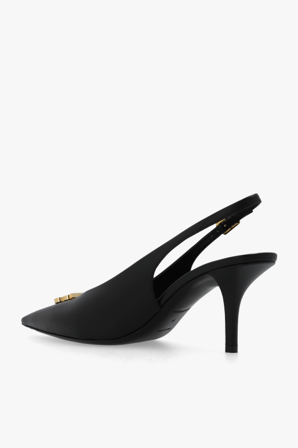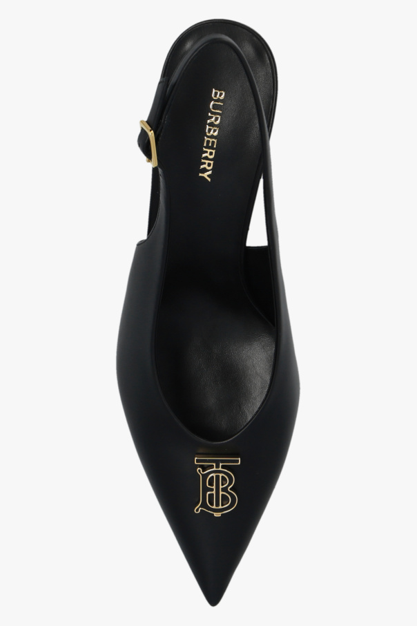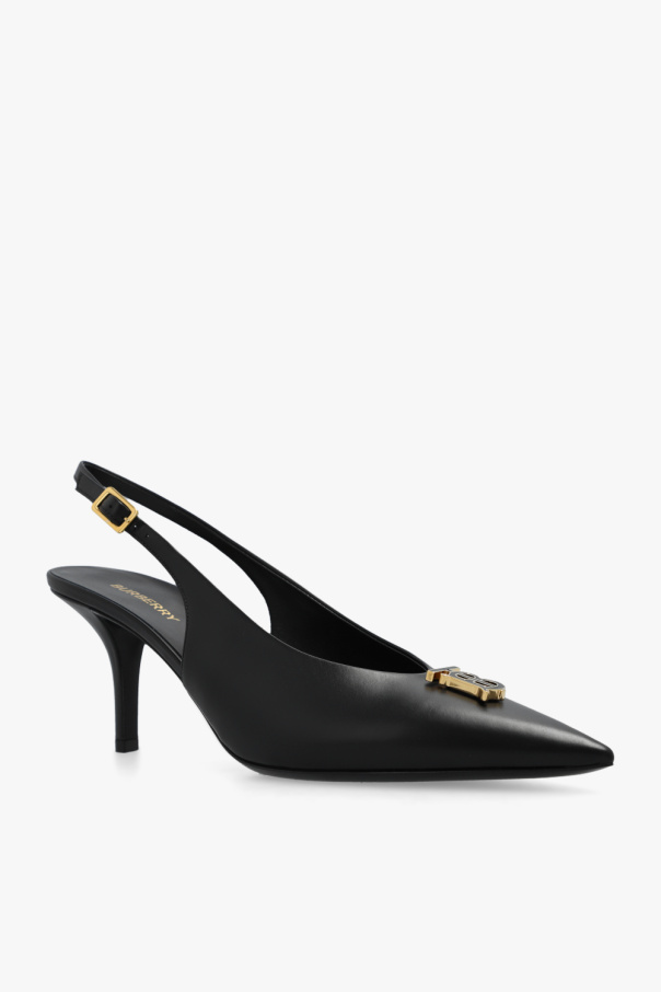 Black pumps from Burberry. Crafted from leather, this model sits on a black leather sole and features an elastic strap with a buckle at the back.