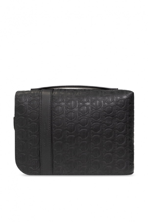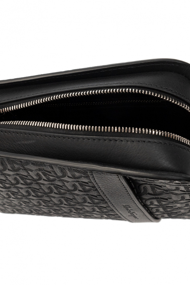 Black shoulder bag from Salvatore Ferragamo. Crafted from calf leather embossed with the brand\'s signature 3D Gancini pattern, this design features a two-way zip fastening, an external slip pocket on the front, a side handle, a detachable and adjustable shoulder strap, silver-tone metal hardware and one internal compartment with a zip pocket.