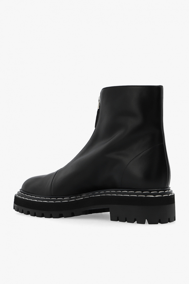 Black boots from Proenza Schouler. Made from calf leather, this model features a side zip fastening and a black rubber sole accentuated with contrasting white stitching details.