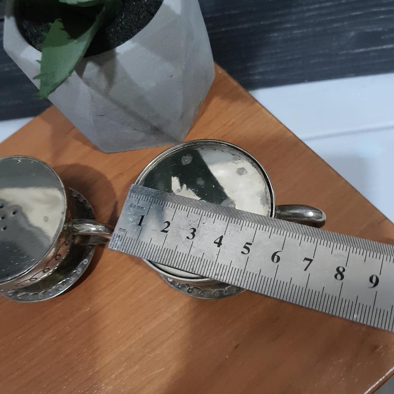Очень необычный и милый набор, винтаж, увесистые миниатюрные чашечки для соли и перца. общее состояние отличное, куплены в таком же виде как продаются, использовались для декора. возможно, требуют дополнительной полировки в мастерской, чтобы идеальная была поверхность без блеклых пятен. как на одной из( на последнем фото показала).