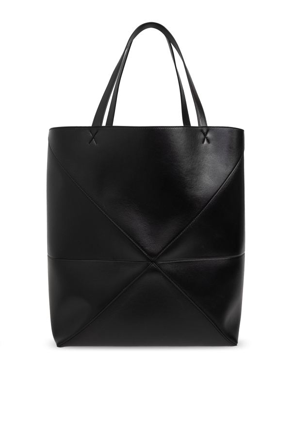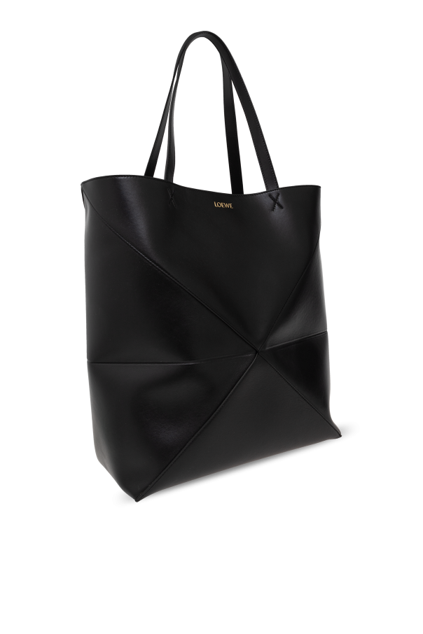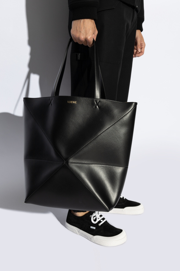 Introducing the epitome of sophistication, the \'Fold XL Shopper\' by the renowned designer Loewe. Crafted from the finest calfskin leather, this exquisite piece exudes luxury from every angle. Its sleek black hue lends a timeless elegance, making it a versatile addition to any wardrobe. The bag\'s distinctive feature, a unique origami-inspired pattern on the front, creates an illusion of depth and complexity, adding a touch of intrigue to its rectangular silhouette. This three-dimensional effect is not only visually captivating but also showcases Loewe\'s innovative approach to design. The interior, lined with a soft, contrasting material, possibly suede, further accentuates the bag\'s refined aesthetic. A subtle designer logo, strategically placed at the top, ensures brand recognition while maintaining the bag\'s minimalist charm. The long handles, detailed with elegant x-shaped stitches, allow for comfortable shoulder wear, highlighting both the practicality and craftsmanship of this exceptional piece. Why Purchase This Product? Unparalleled Quality: Made from 100% calfskin leather, promising durability and a luxurious feel. Unique Design: The origami-like pattern offers a sophisticated, three-dimensional visual appeal. Elegant Functionality: Spacious enough for daily necessities, with long handles for easy carrying. Exclusivity: Boasting the discreet Loewe logo, this bag is a statement of high fashion and exclusivity. Attention to Detail: The meticulous construction and contrasting interior lining signify a product of the highest craftsmanship.