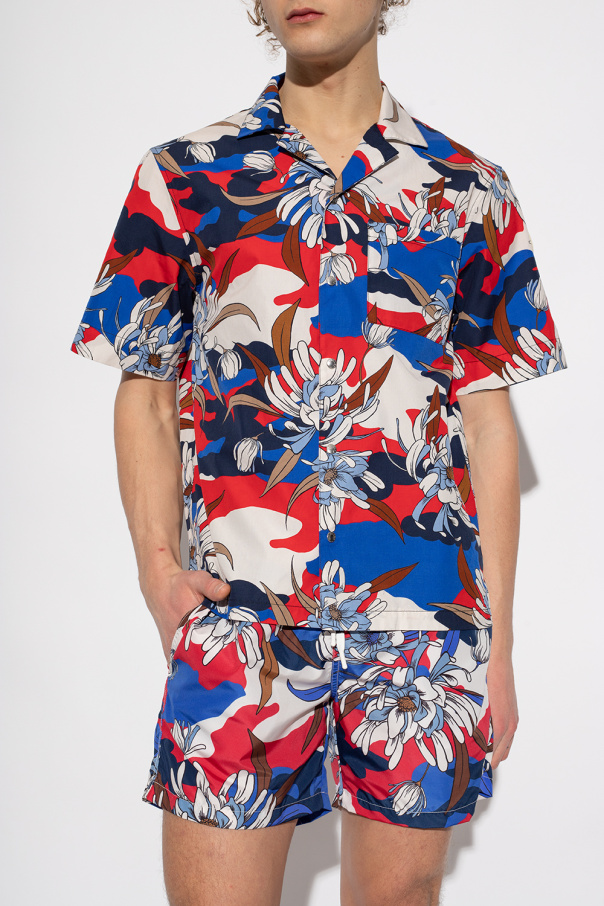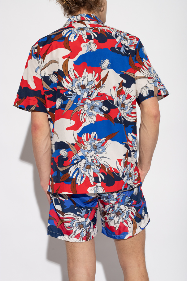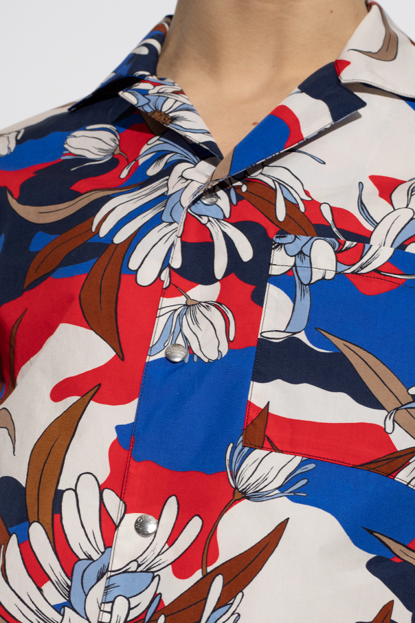 Multicolored shirt from Moncler. Made of cotton, this short sleeve design features snap buttons, a floral pattern and slip pocket.